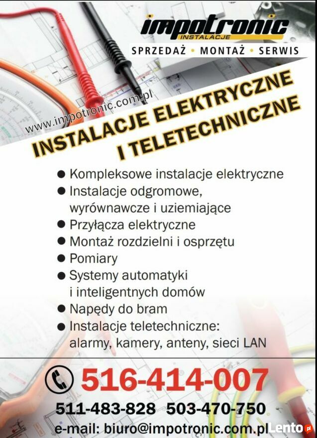 - Kompleksowe instalacje elektryczne- Instalacje odgromowe, wyrównawcze i uziemiająca